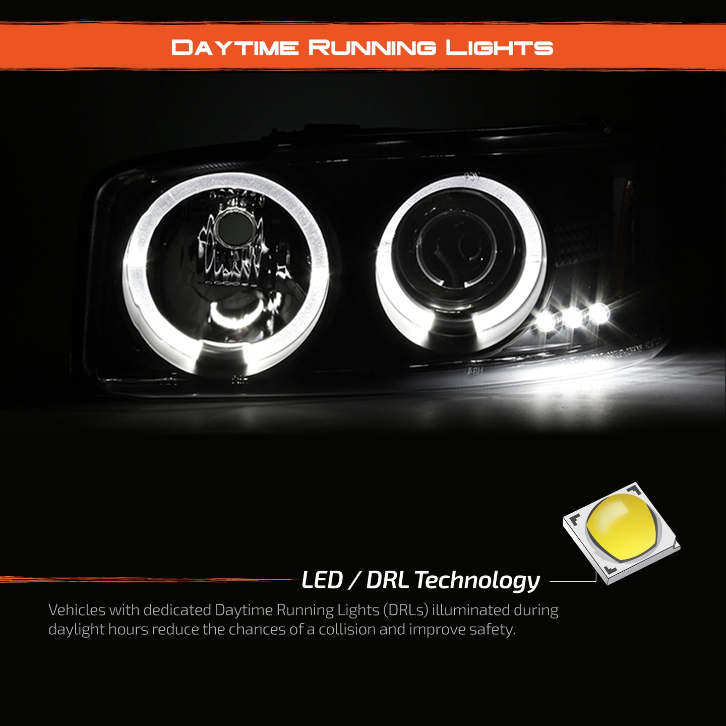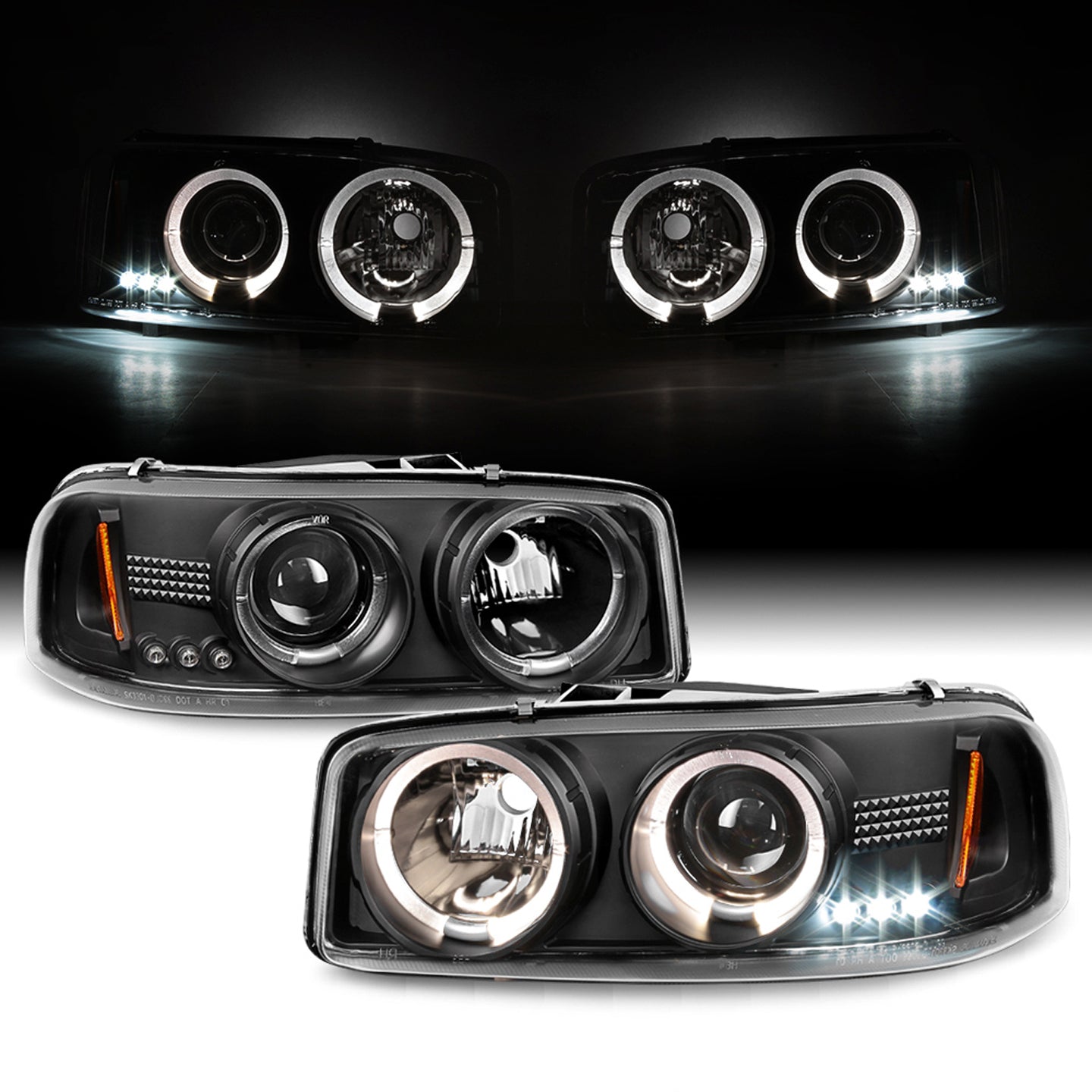 AKKON - For GMC Sierra Yukon Denali Pickup Black Halo Ring LED Projector Replacement Headlights Left/Right Lamps