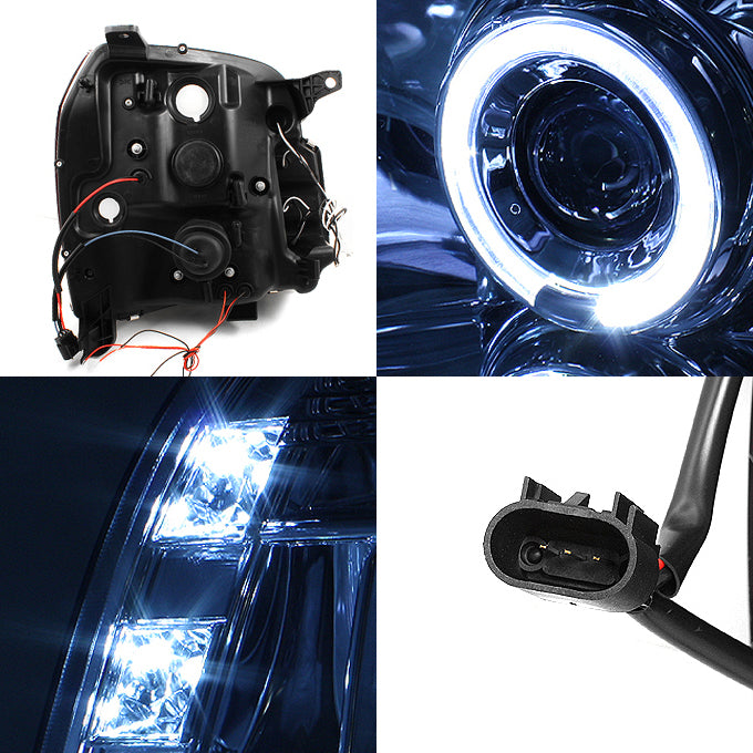AKKON - For 2007-2014 GMC Yukon XL 1500 / XL 2500 Denali SUV Dual Halo LED Projector Chrome Headlights Front Lamps Pair