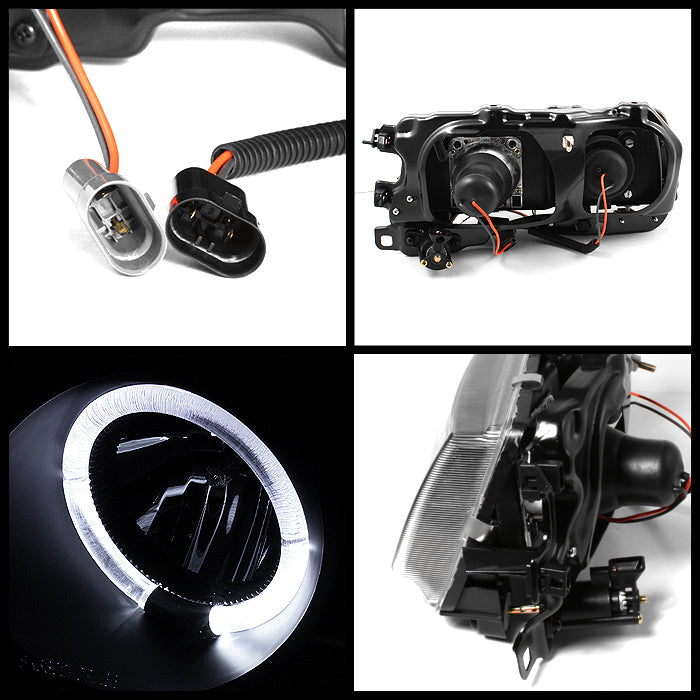 AKKON - For Honda Civic Black Bezel Halo Ring Projector Headlights Driver Passenger Replacement Left + Right