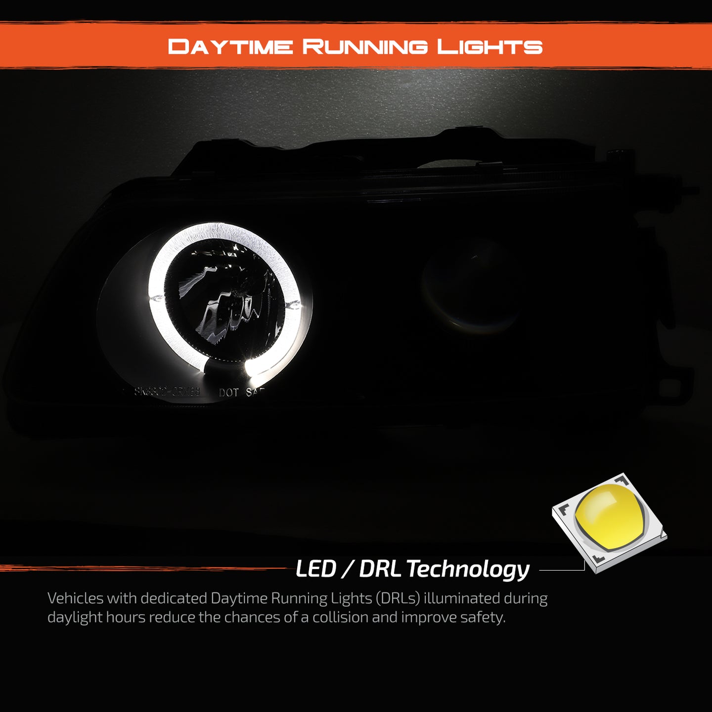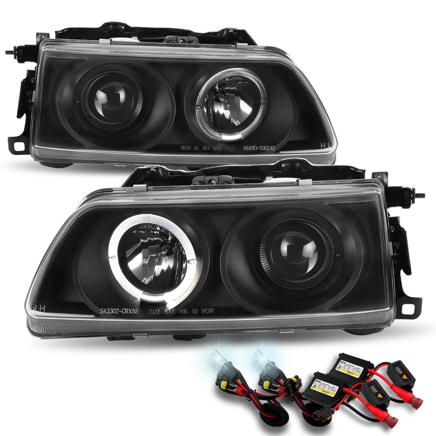 AKKON - For Honda Civic CRX Black Bezel Halo Ring Design Projector Headlights Replacement + 6000K HID