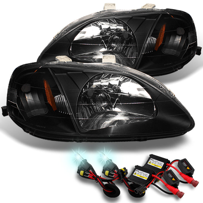 AKKON - For Honda Civic OE Replacement Black Headlights Driver/Passenger Head Lamps +8000K Slim HID Xenon Kit