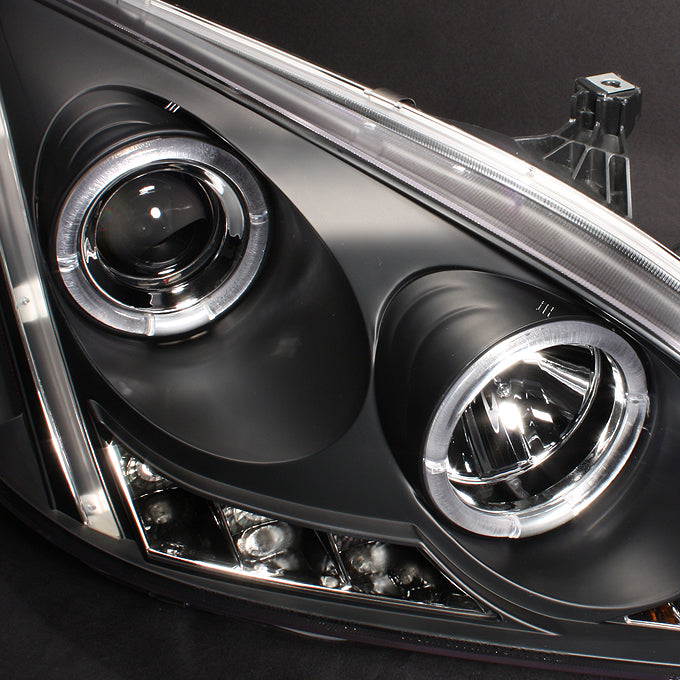 AKKON - For Honda Accord Black Bezel Dual Halo Ring DRL LED Projector Headlights Front Lamps Replacement Pair