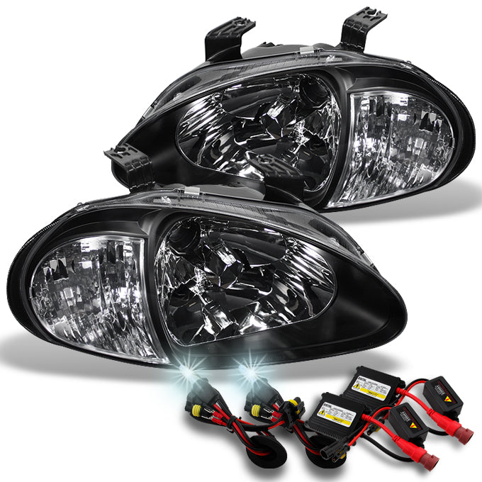 AKKON - For Black Housing For Honda Del Sol 1PC Headlights &Corner Lamp + Slim 6000K HID Xenon Combo