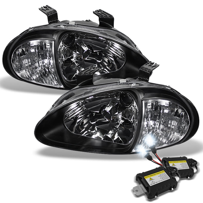 AKKON - For Honda 93-97 Del Sol 1Pc Black Housing Crystal Headlights w/Corner Lamp + 6000K Slim Ballast HID Kit