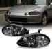 AKKON - For Honda Del Sol Black 1 Piece Headlights Corner Signal Lamps Left + Right