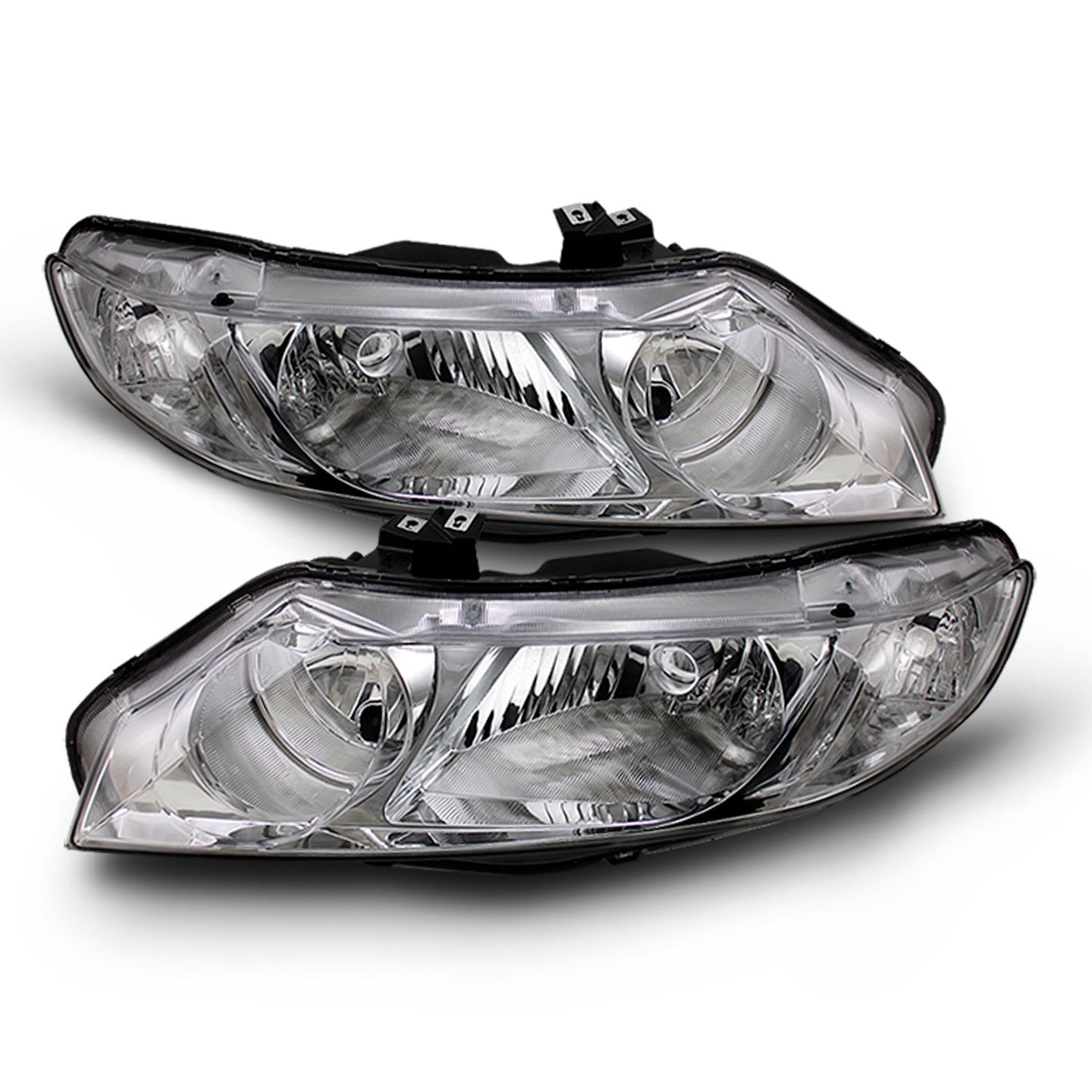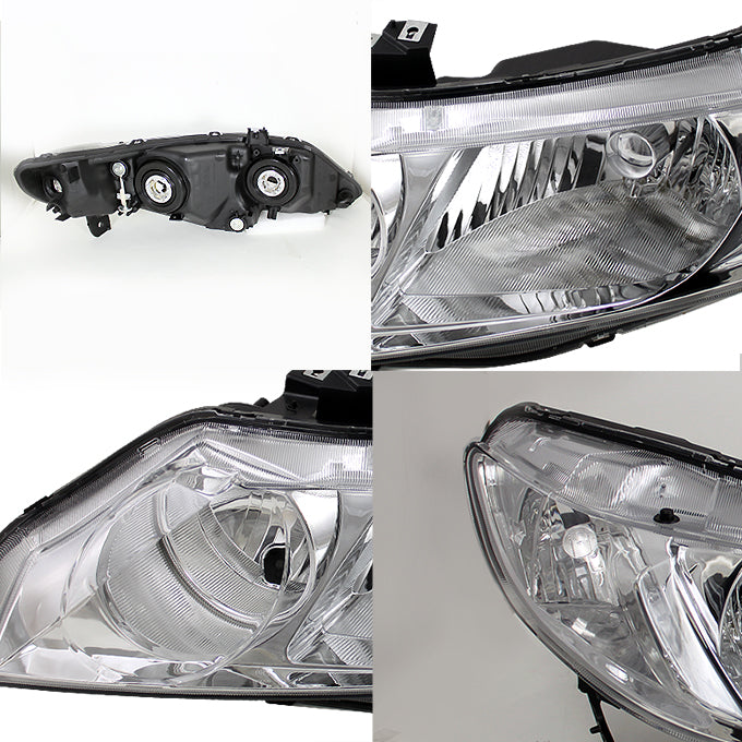 AKKON - For 06-11 Honda Civic 4DR Sedan Chrome Clear Headlights Front Lamps Replacement Pair Left + Right