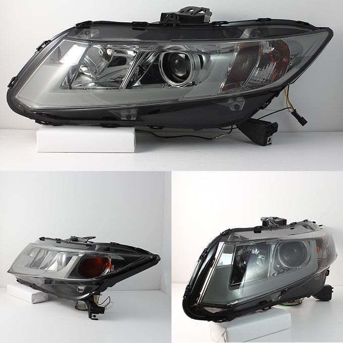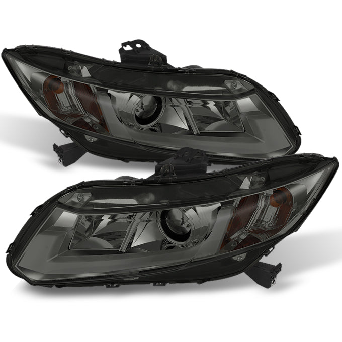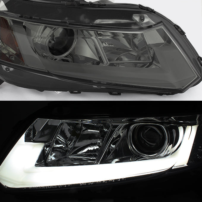 AKKON - For Honda Civic 4 Doors Sedan Smoked SMoke DRL Light Tube Projector Headlights Driver Passenger Lamps
