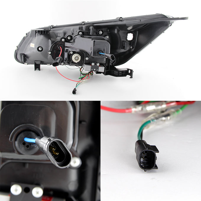 AKKON - For Honda Accord Black Bezel DRL Daylight LED Tube Strip Projector Headlights Front Lamps Replacement