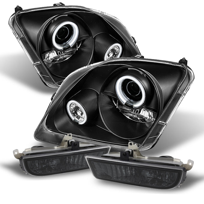 Fits 97-01 Prelude CCFL Halo Projector Black Headlights + Smoked Fog Lights Lamp