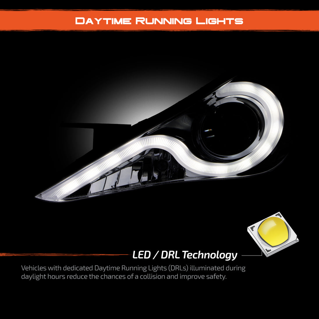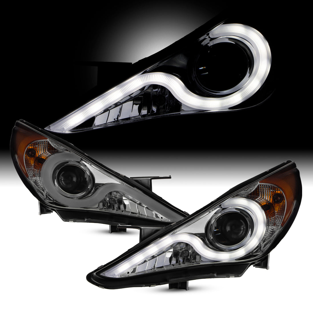 AKKON - For Sonata Smoked Smoke DRL Daylight LED Strip V2 Projector Headlights Lamps Left + Right Replacement