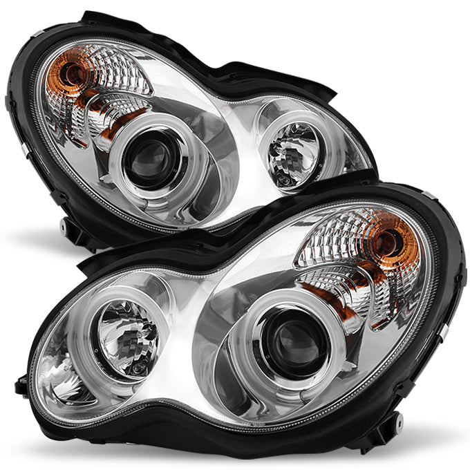 AKKON - [CCFL Halo] For 01-07 Benz W203 C-Class 4-Doors Sedan Wagon Chrome Clear Projector Halogen Type Projector Headlights