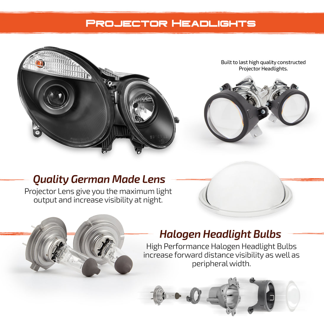 AKKON - [HID/Xenon Type] Black Bezel For 2003-2009 Mercedes Benz W211 E-Class 4Doors DRL Projector Headlights Left+Right Pair