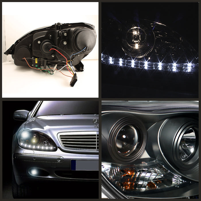 Fits 2000-06 Mercedes Benz W2 S-Class Blk Projector DRL Daylight LED Headlights