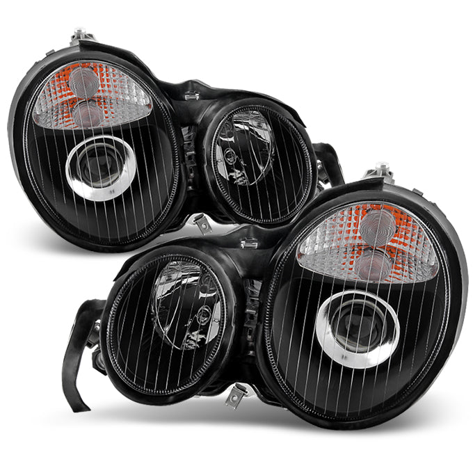 AKKON - For 96-99 Mercedes Benz W210 E-Class E320 E430 E55 Black Bezel Projector Headlights Lamps Left+Right Pair