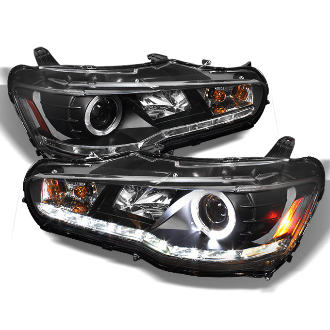 AKKON - For Mitsubishi Lancer Evolution CZ4A EVO X Chrome Halo DRL LED Halogen Type Projector Headlights