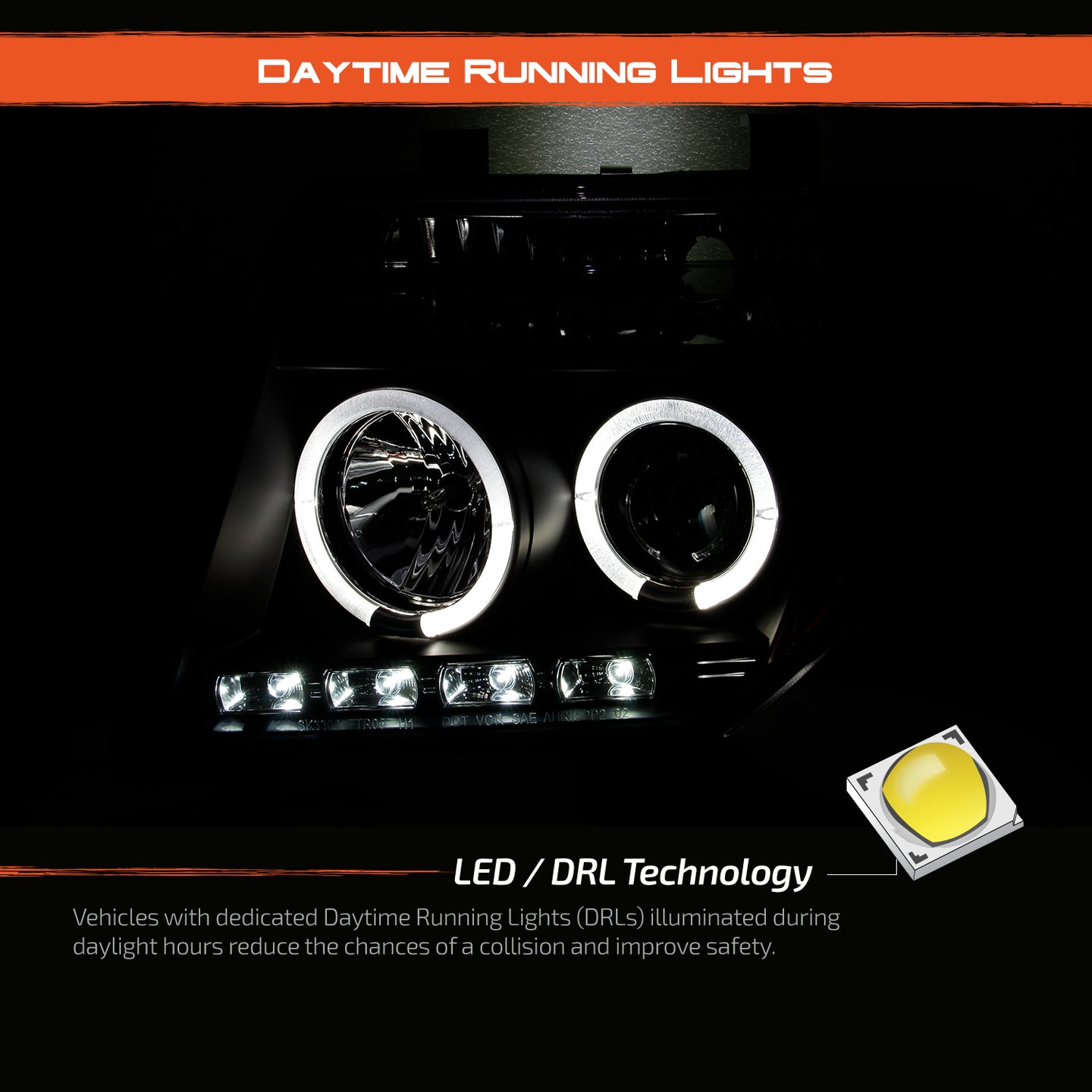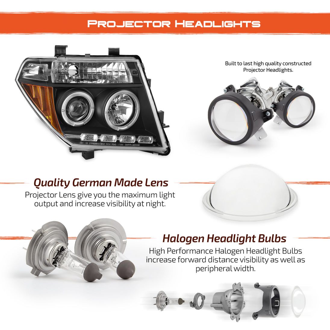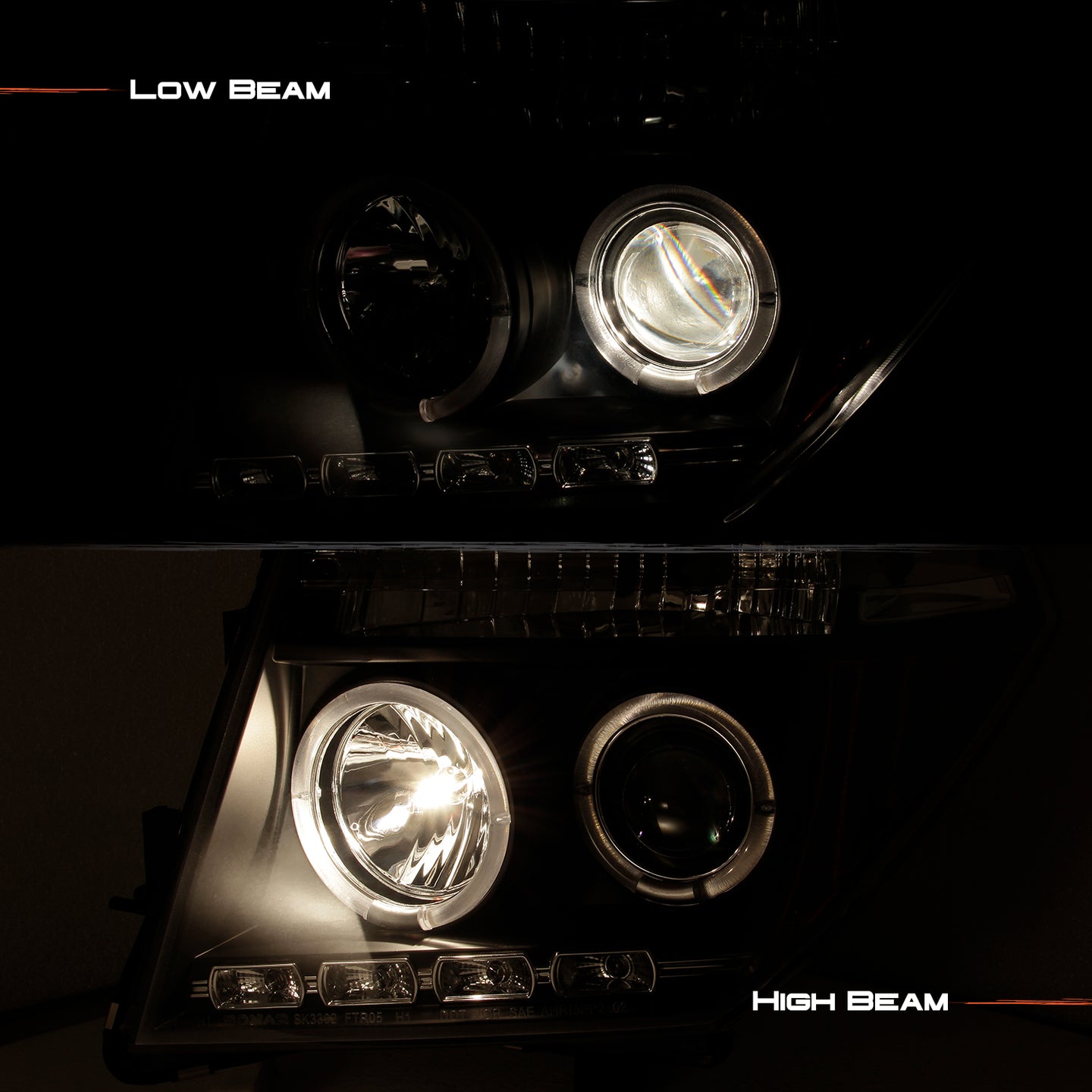 AKKON - Fits 05-08 Frontier & 05-07 Pathfinder Black Bezel Dual Halo Ring Projector LED Headlights Pair Housing