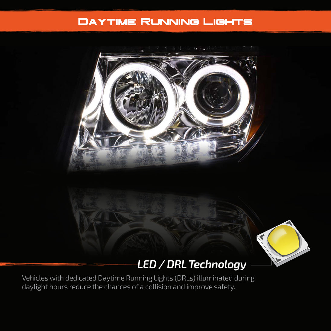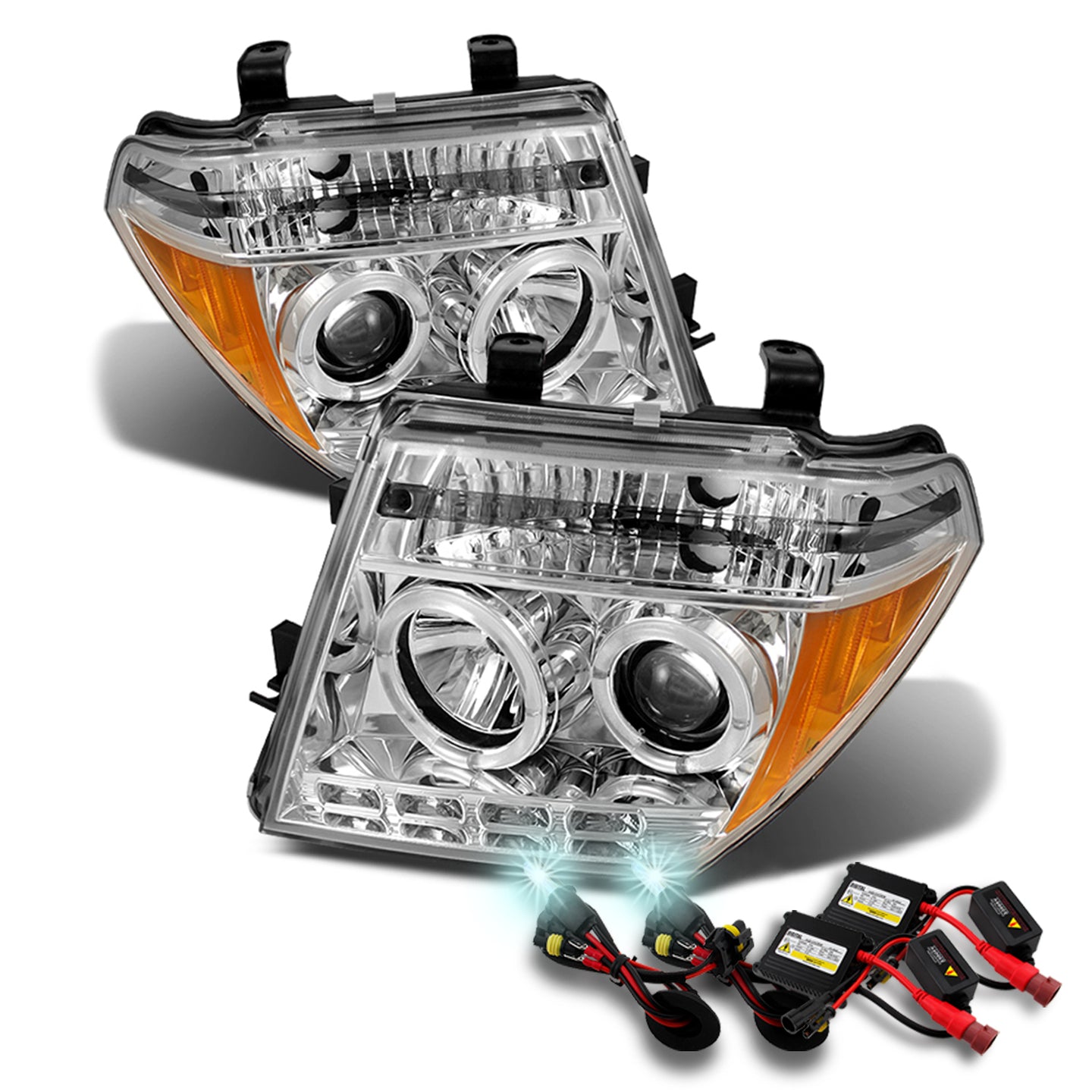 AKKON - For 05-08 Nissan Frontier 05-07 Pathfinder Chrome Clear Dual LED Halo Projector Headlight+8000K HID