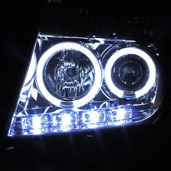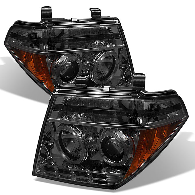 AKKON - For 2005-2008 Frontier / 05-07 Pathfinder Smoked Smoke Dual Halo Ring Projector LED Headlights Driver Passenger Pair Set