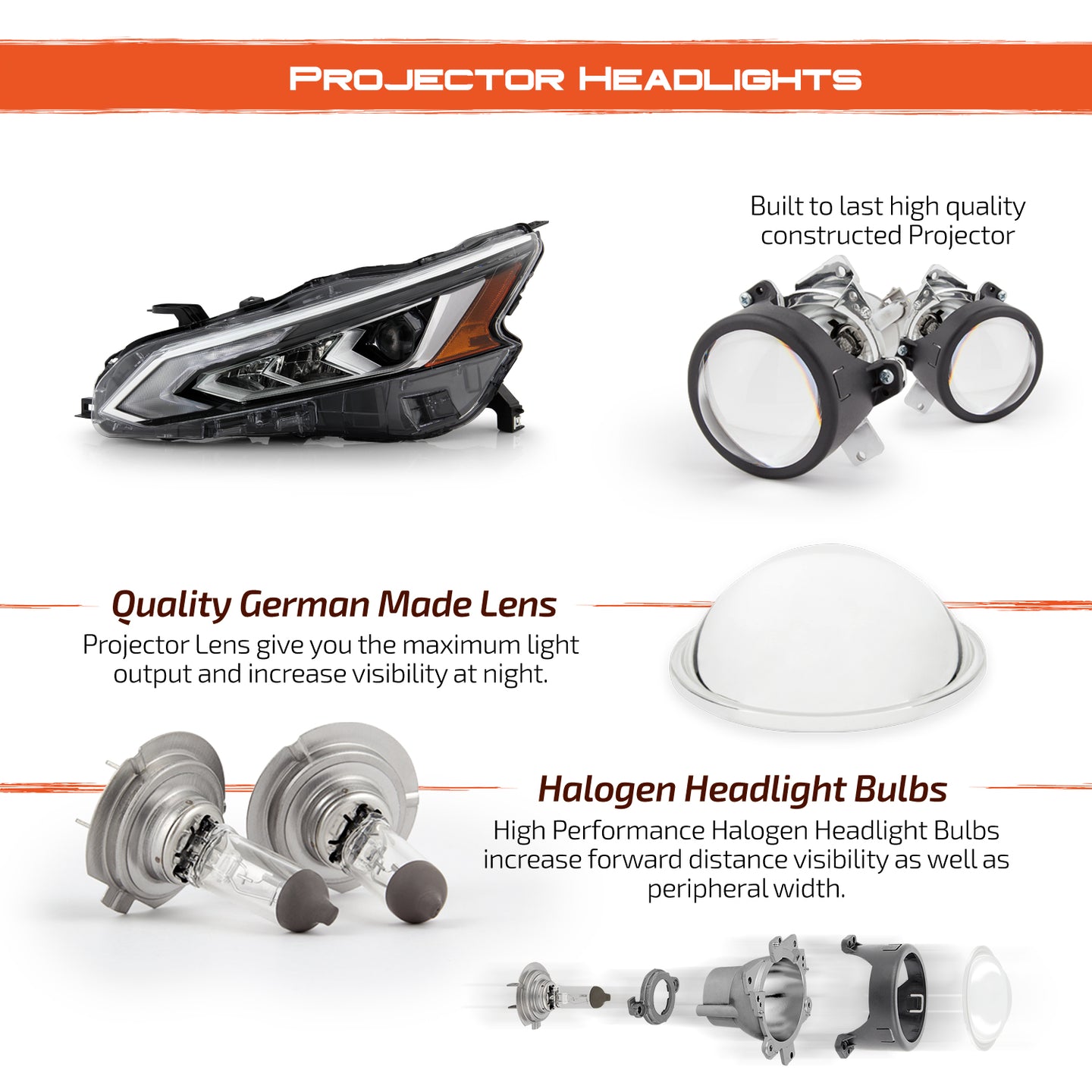 AKKON - Fits 2019-2022 Nissan Altima |Sedan Halogen Model| Full LED Projector Headlights Replacement - Left Side
