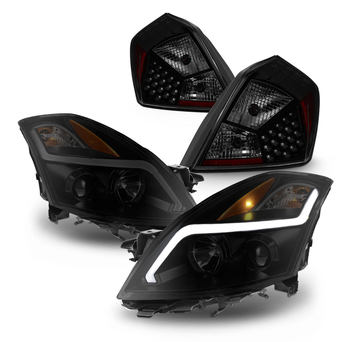 AKKON - [Black Smoke] Fits 2007-2009 Nissan Altima Sedan LED Light Bar DRL Projector Headlights & Tail Lights