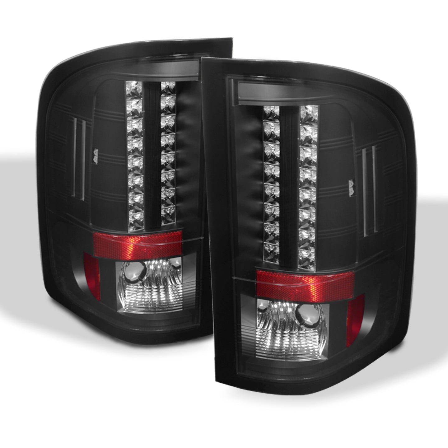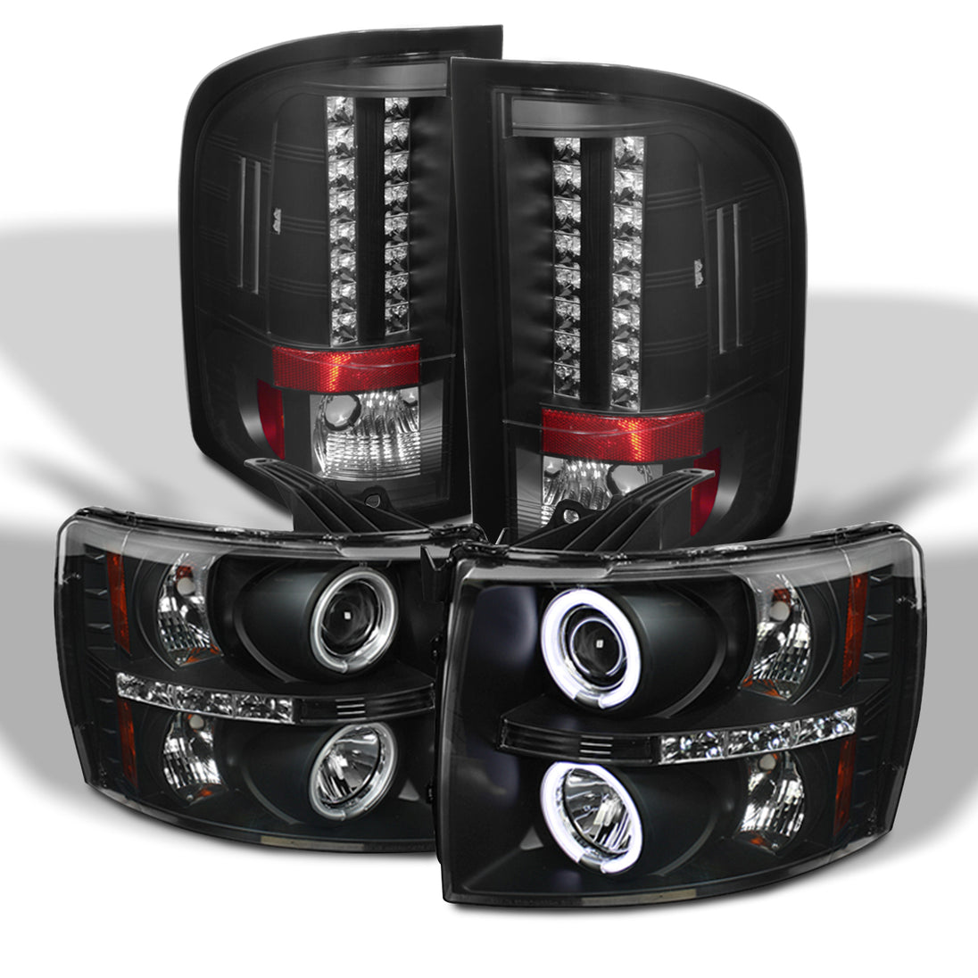 AKKON - For 2007-2013 Chevy Silverado Pickup Dual CCFL Halo Projector Black Housing Headlights + Tail Lamps LED Set