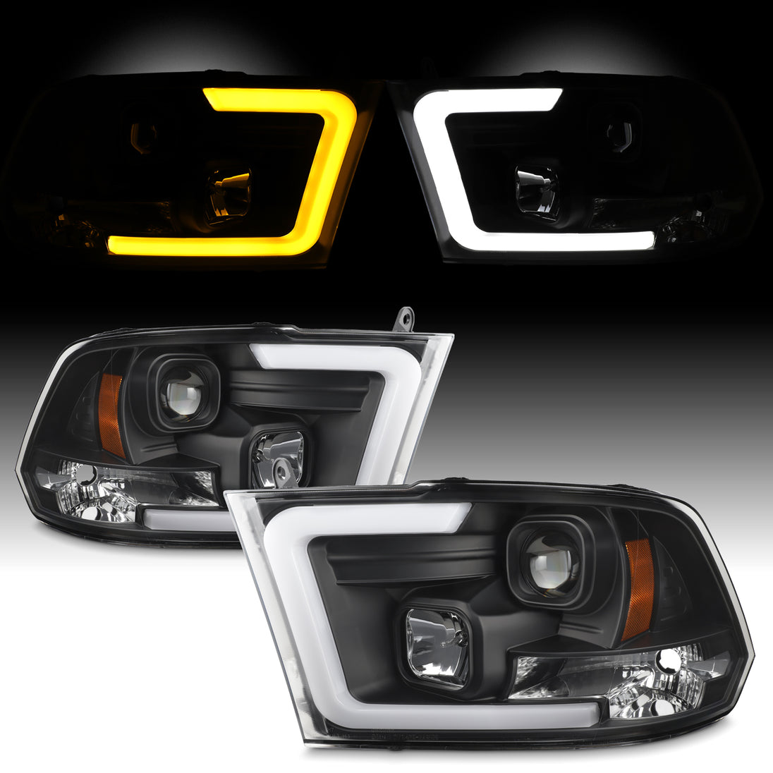 AKKON - Fit 2009-2018 Dodge Ram 1500 2500 3500 Black DRL LED Switchback Turn Signal Projector Headlight [w/LED Low Beam]