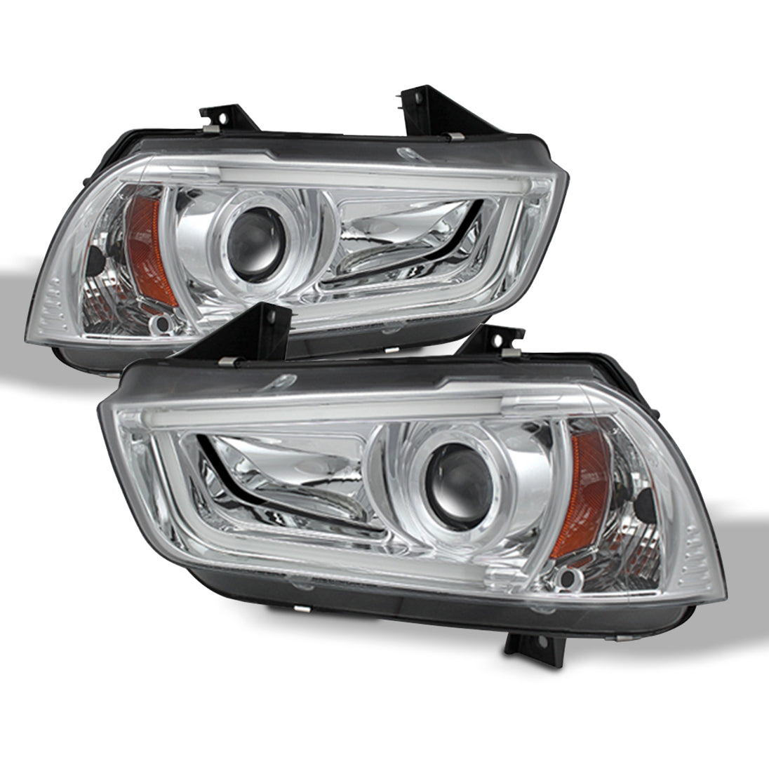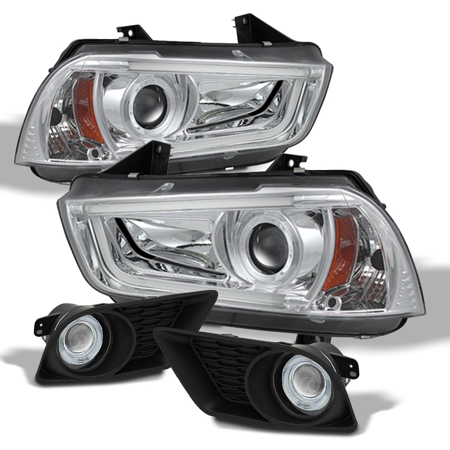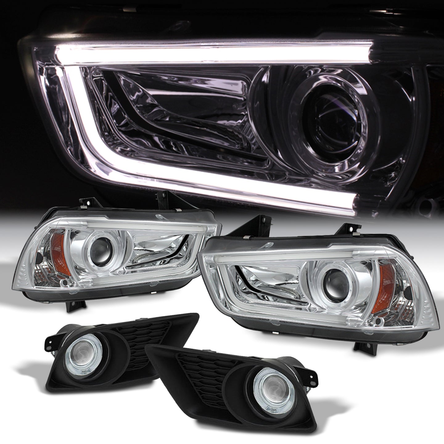 AKKON - Fits 2011-2014 Charger Se R/T SXT LED Bar Projector Headlights + Projector Fog Lamps [Chrome Housing]