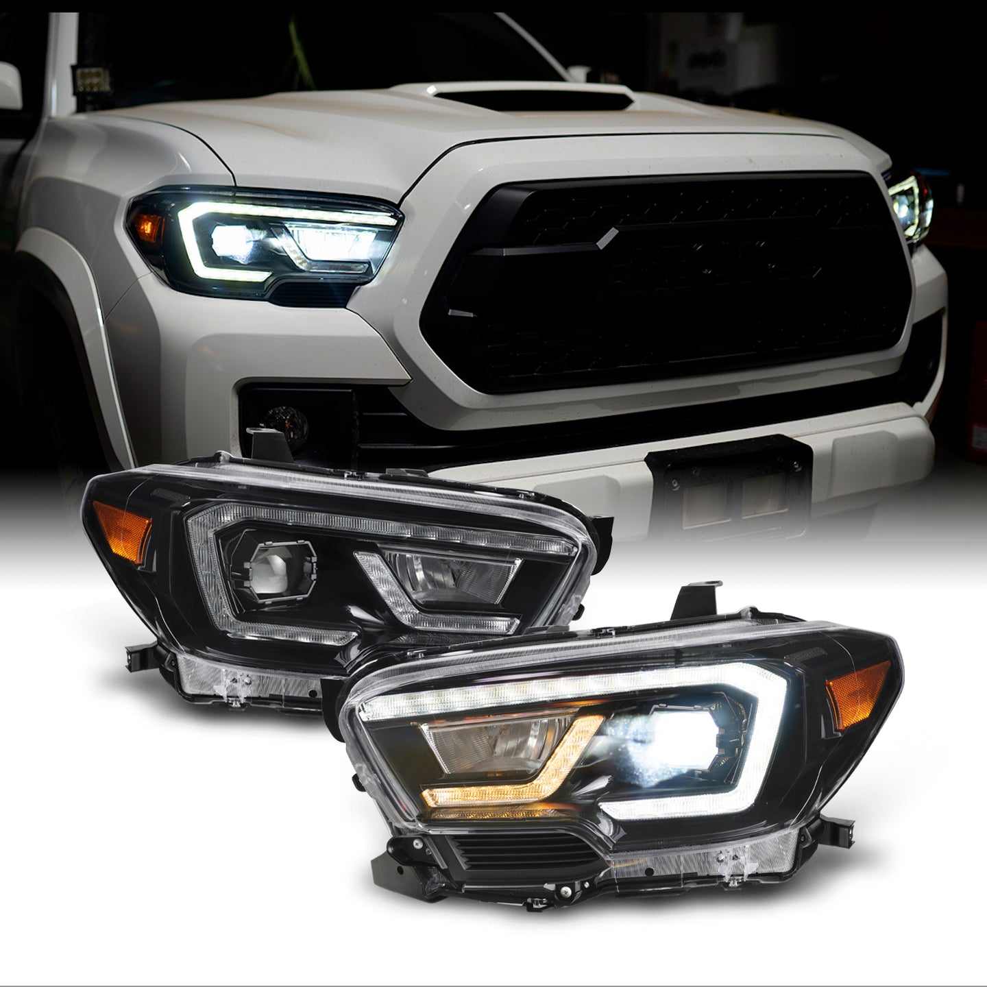 AKKON - For 2016-2023 Tacoma TRD/Limited Sequential LED Tube Design Chrome Square Projector Headlights