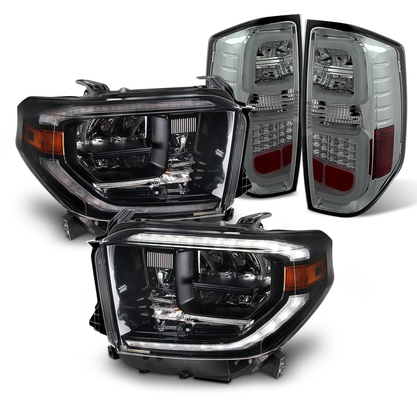 AKKON - For 14-21 Tundra [LED DRL Type] Full LED Retrofit Headlight Assemblies + CC Style Smoked LED Tail Lamp