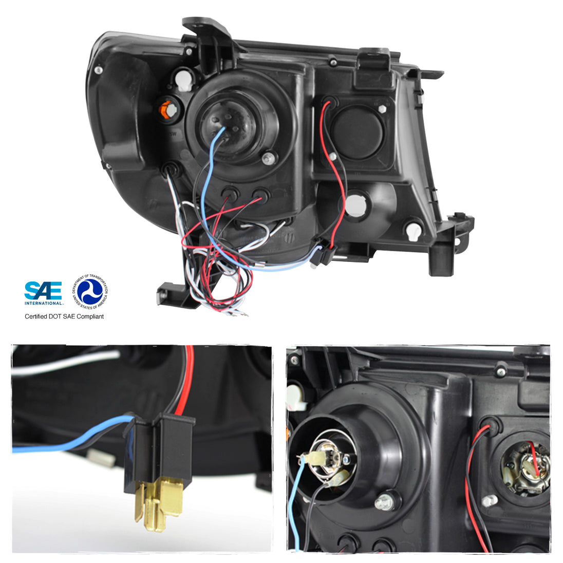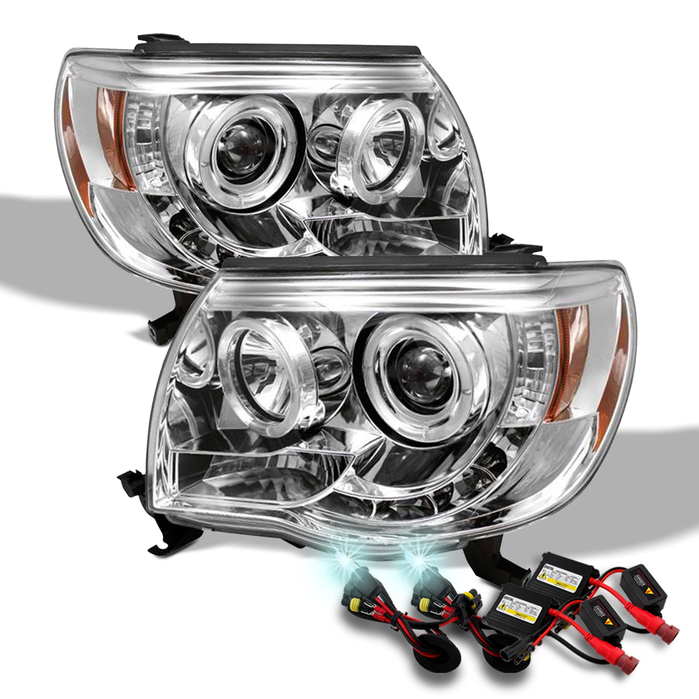 AKKON - For 05-11 Toyota Tacoma Pickup Chrome Clear Dual Halo Ring Design Projector LED Replacement Headlights Lamps + 8000K HID