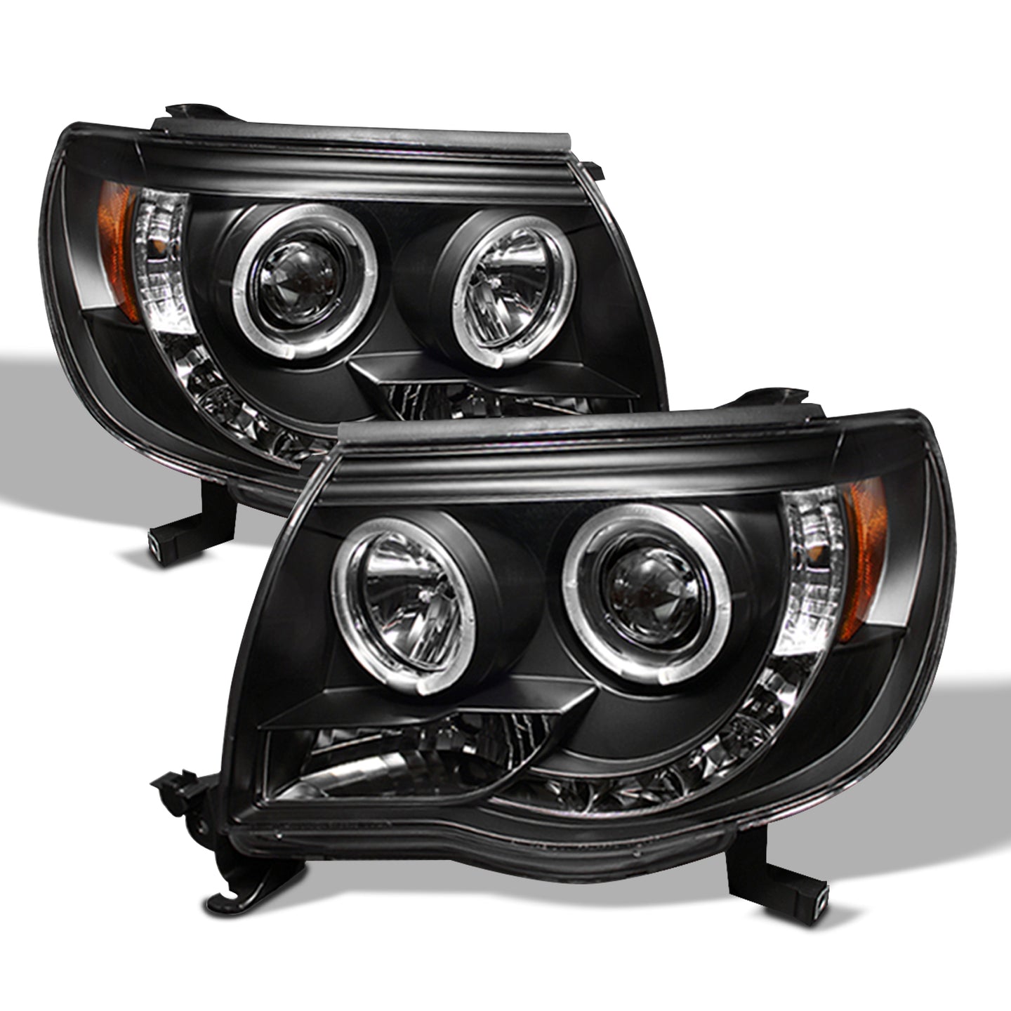 AKKON - For 05-11 Toyota Tacoma Black Bezel Dual Halo Ring Design Projector LED Replacement Headlights + 6000K HID Kit