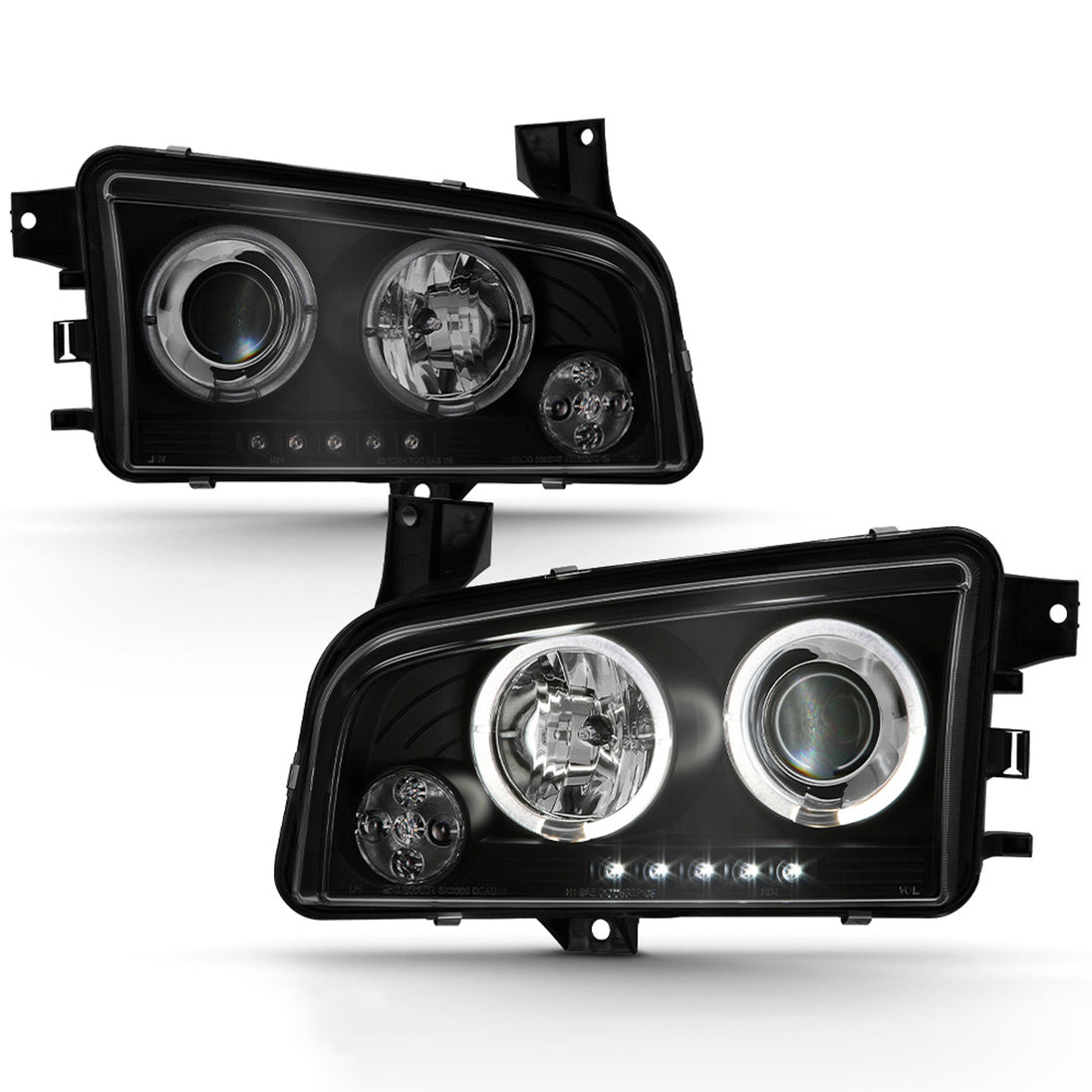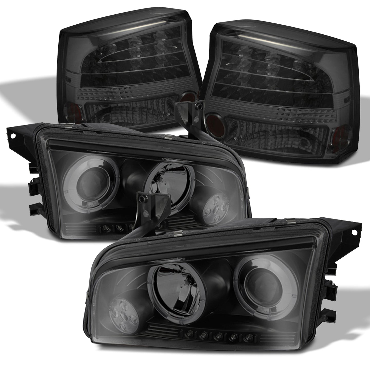 AKKON - [LED Tail + Headlights]Fits 2006-2008 Dodge Charger Dual Halo Headlights + Tail Lights in Black Smoke Housing