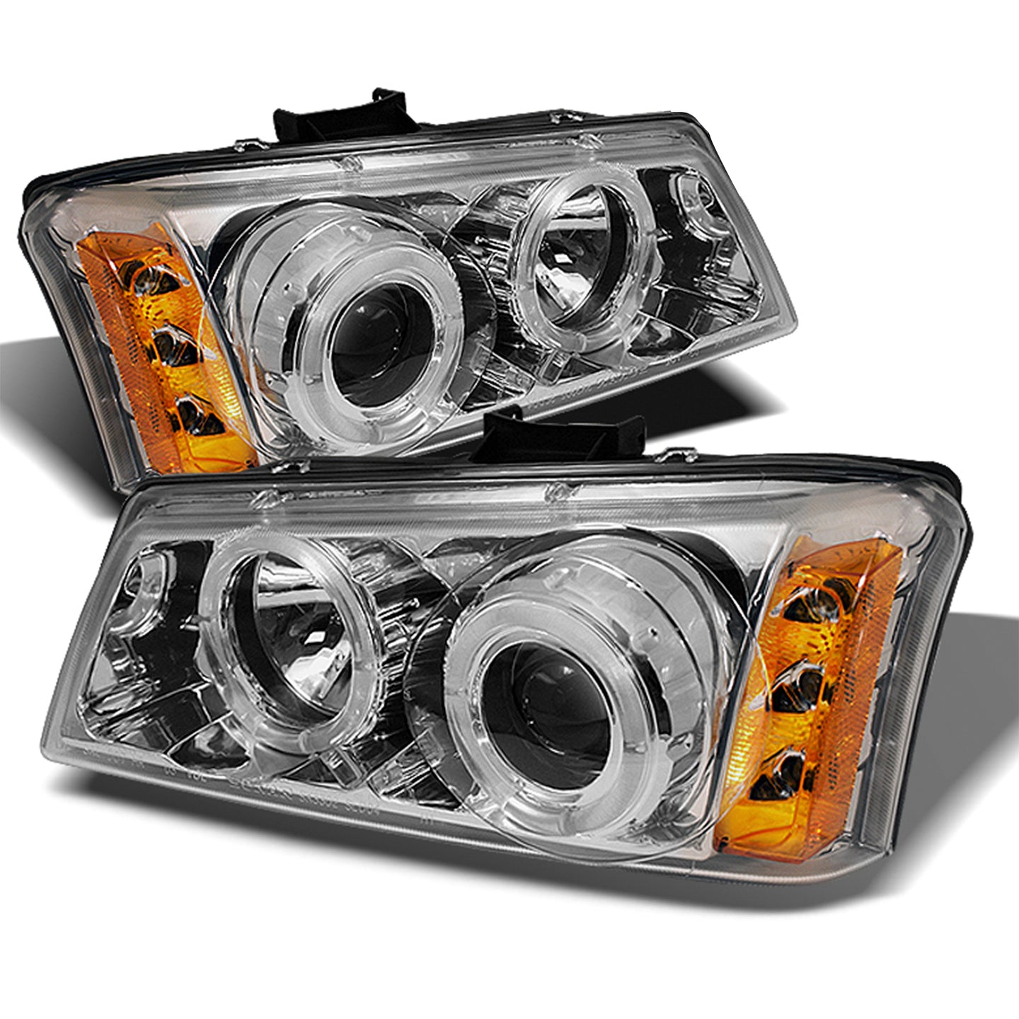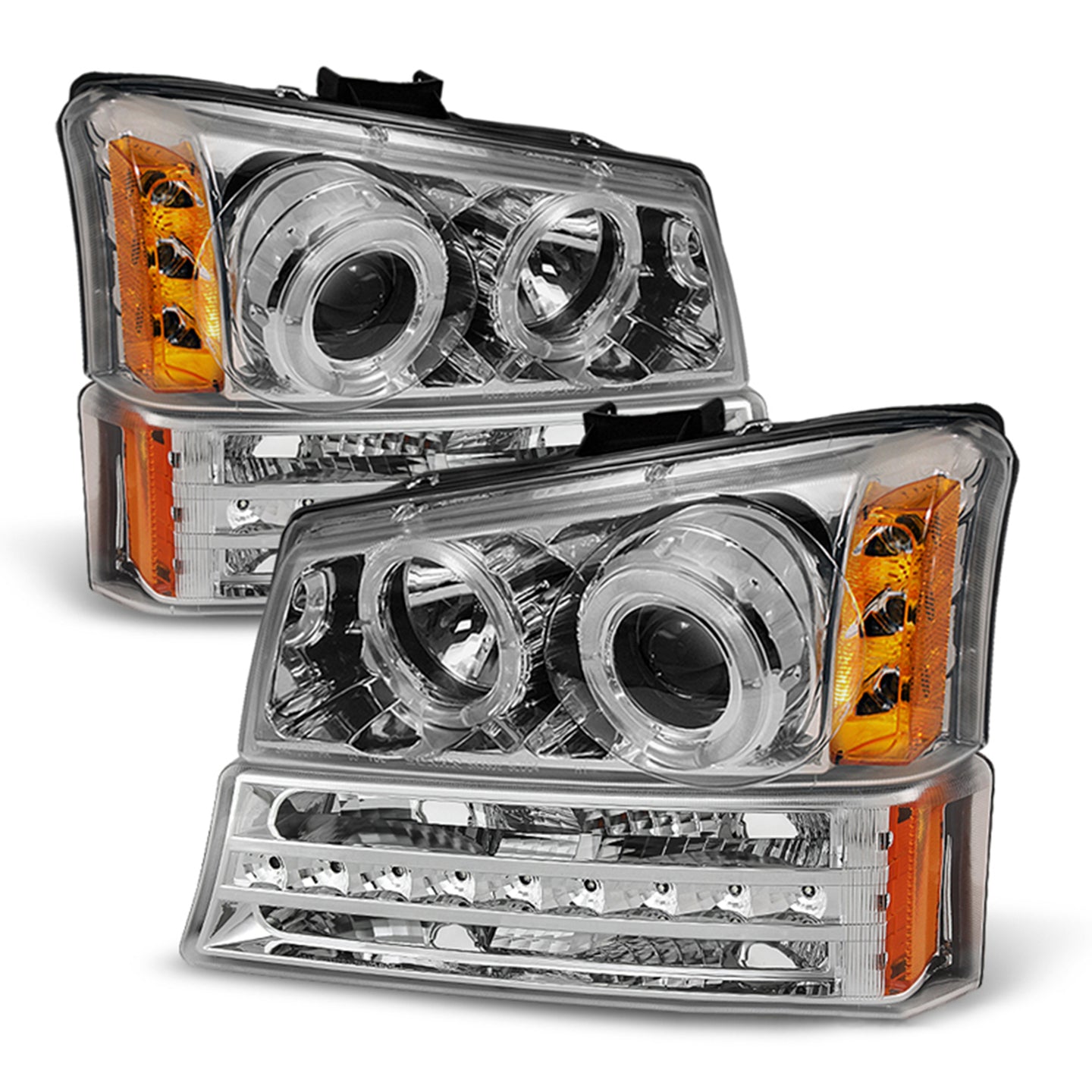 AKKON - For 2003-2006 Chevy Silverado Chrome Housing Dual Halo Projector Headlights + LED Bumper Lamps