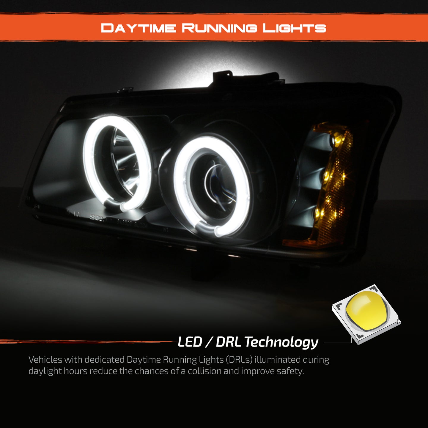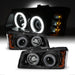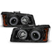 AKKON - Fits 2003-2006 Chevy Silverado Avalanche Truck Black Housing CCFL LED Dual Halo DRL Projector Headlights