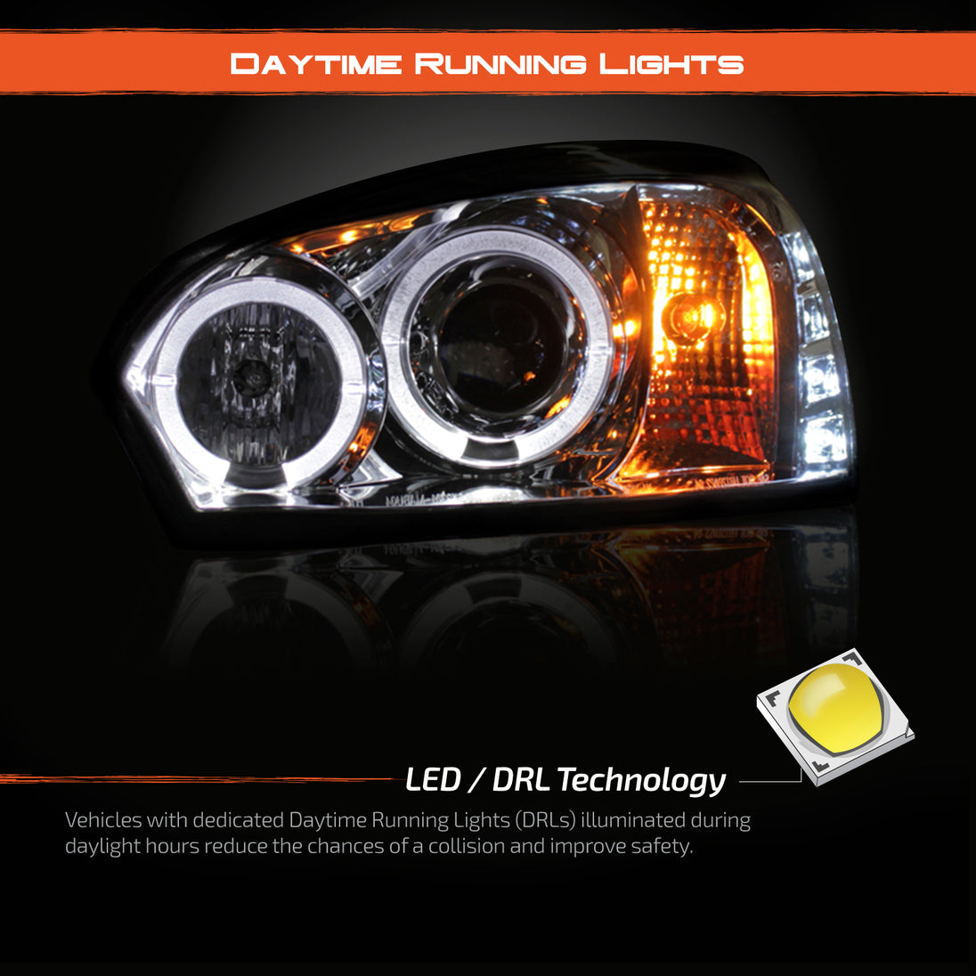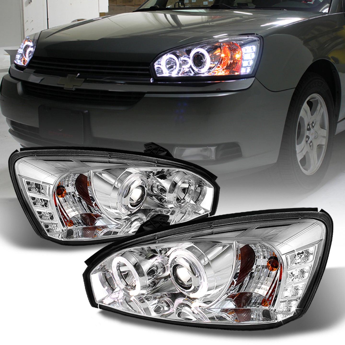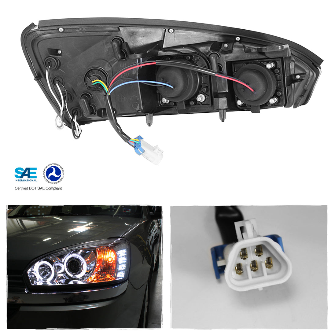 AKKON - For 2004-2007 Chevy Malibu LED Dual Halo DRL Projector Headlights Chrome Housing w/ Turn Signal Lamps