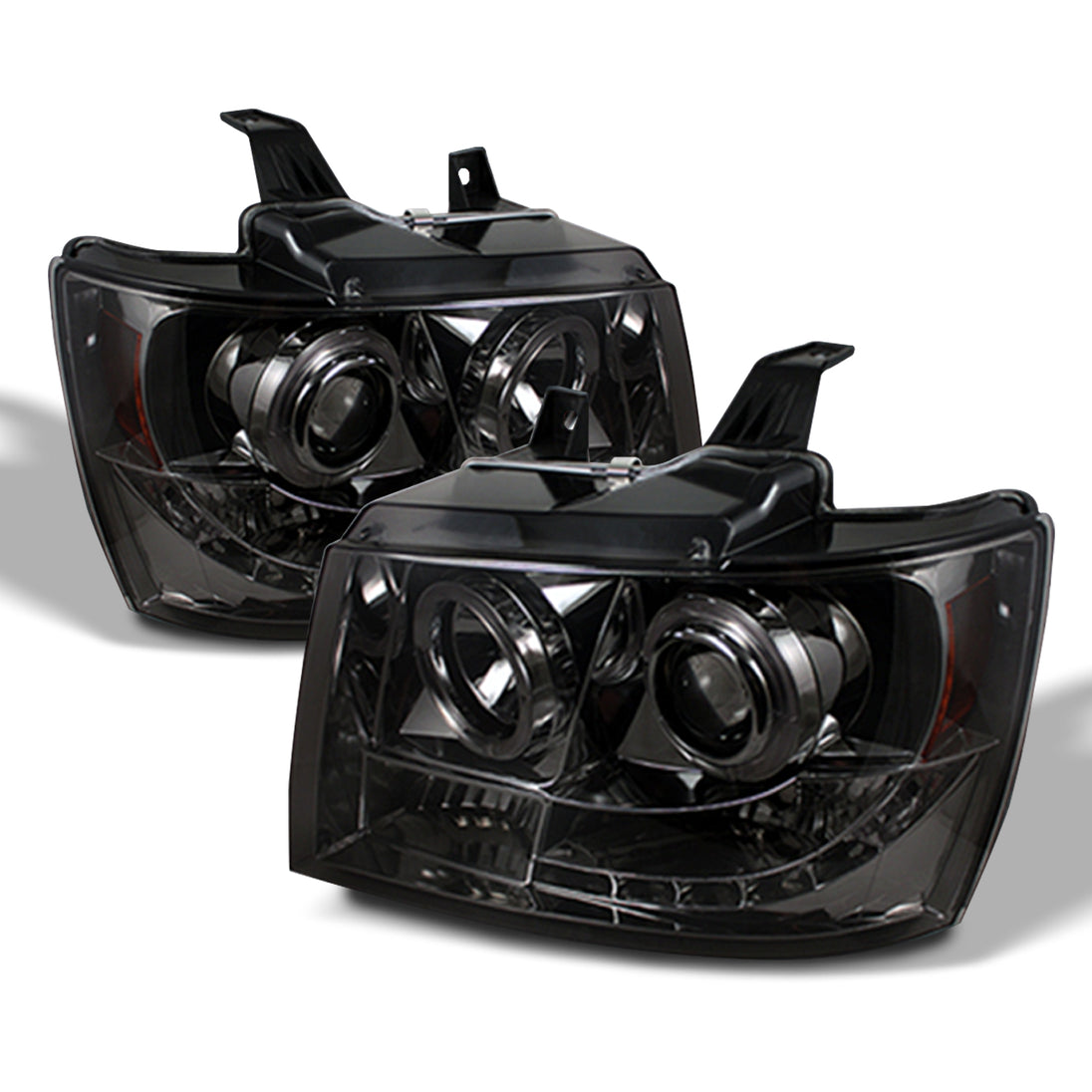 AKKON - [Smoke Lens] Fits 2007-2011 Tahoe Avalanche Suburban LED Dual Halo Projector Headlights + Fog Lights Set