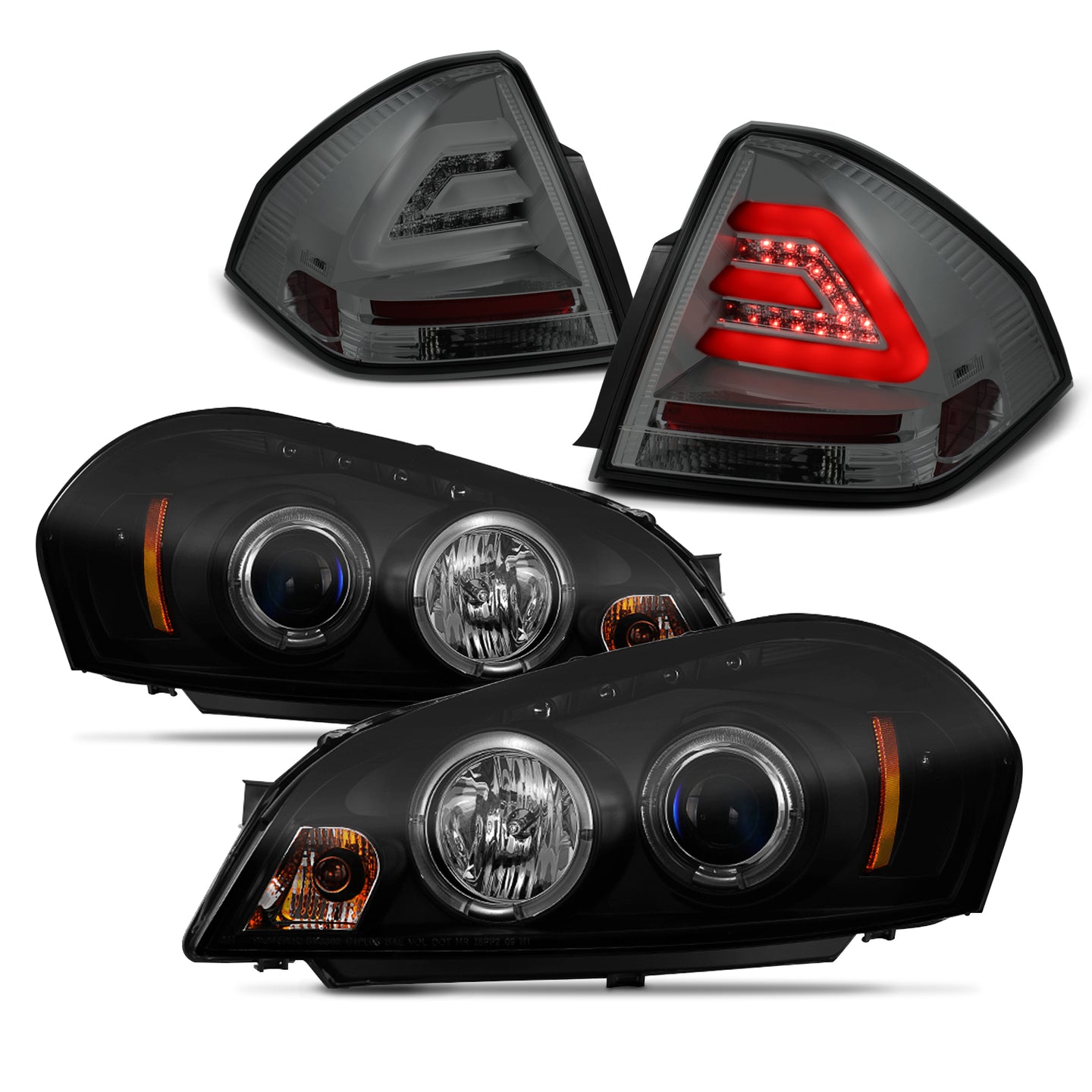 AKKON - For 2006-2013 Chevy Impala / Limited Black Smoke Housing Dual LED Halo DRL Projector Headlights + Tail Lamps