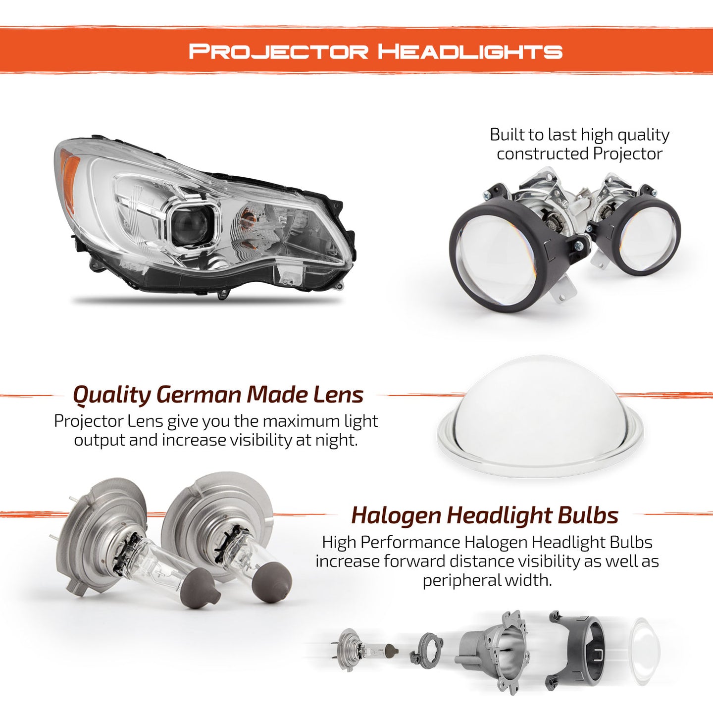 AKKON - For 2012-2015 Subaru Impreza / 2013-2015 XV Crosstrek Halogen Projector Chrome Headlights -w/ Tube Parking Lamp