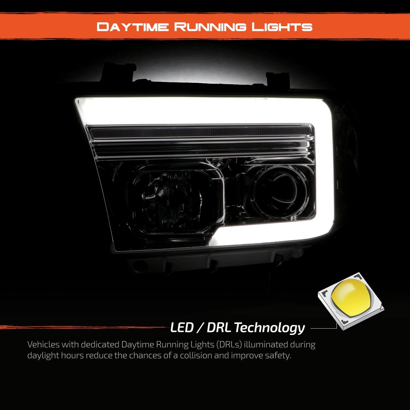 AKKON - For 2007-2009 Toyota Tundra | 2008-2010 Sequoia Sequential LED Tube Signal Projector Headlights Chrome Housing