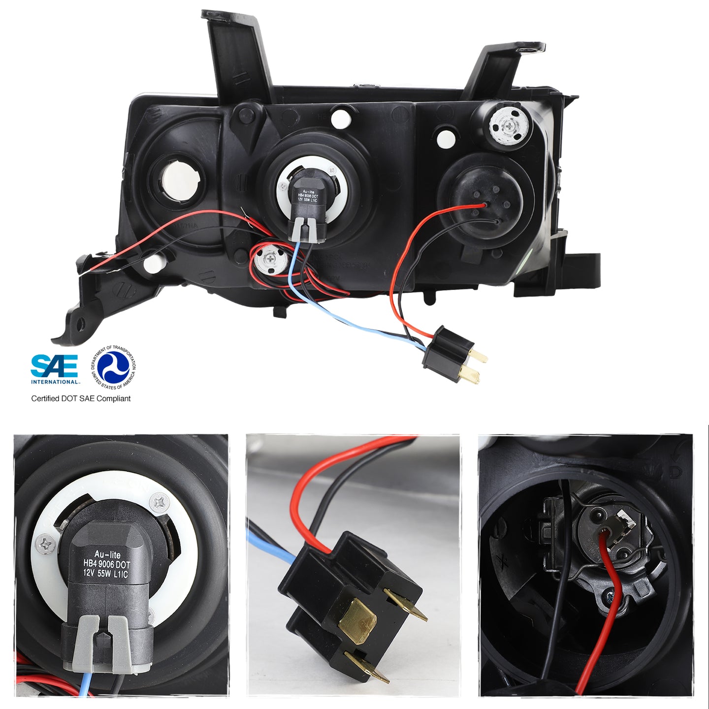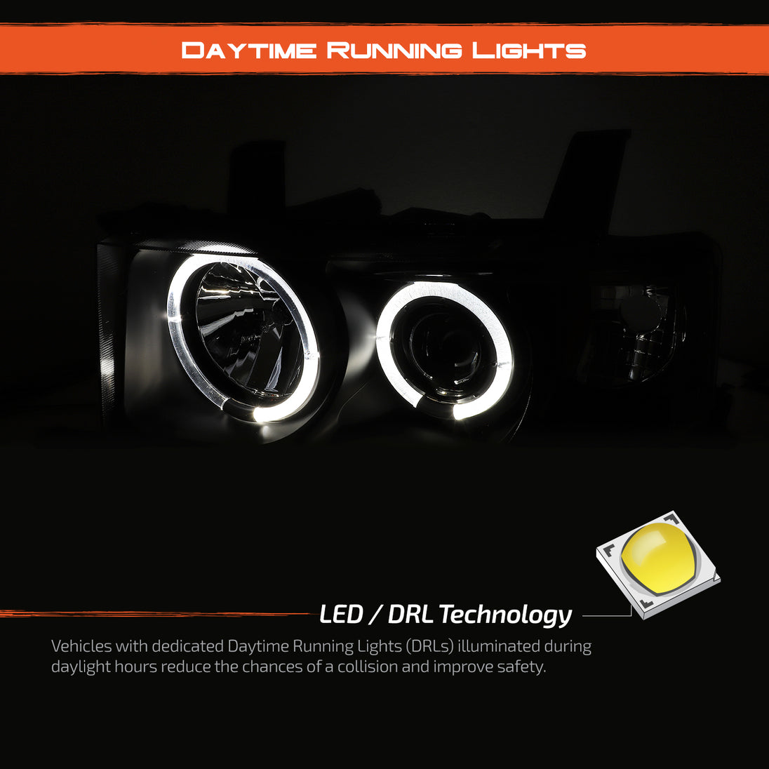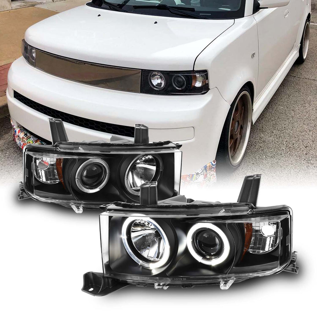 AKKON - For Scion XB BB Black Bezel Dual Halo Projector Headlights Front Driver/Passenger Replacement Lamps