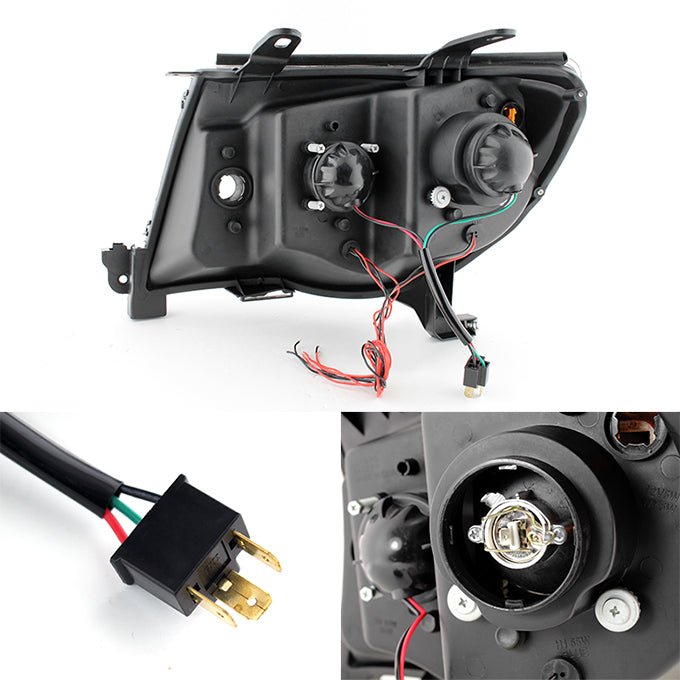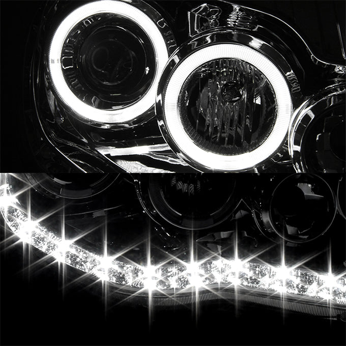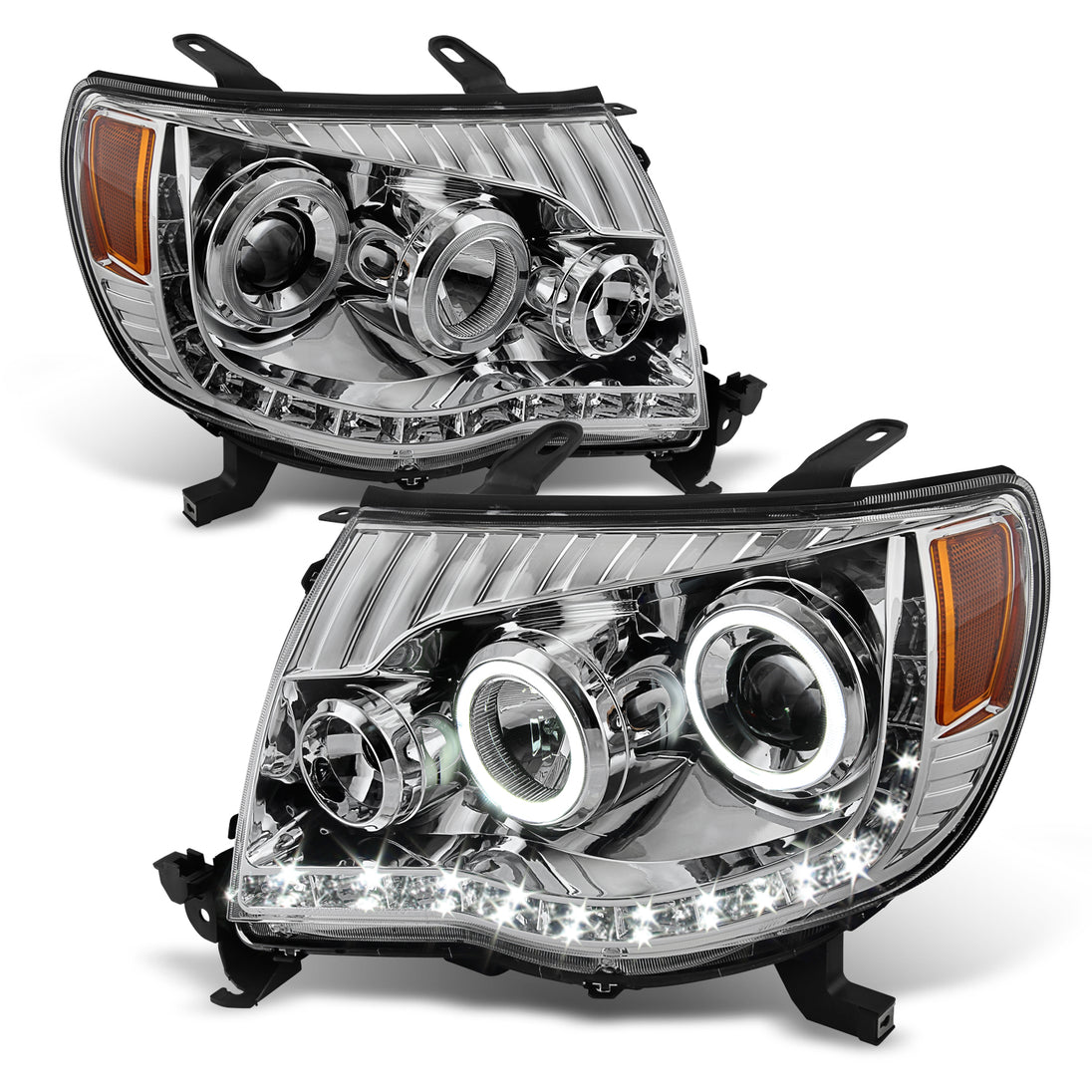 AKKON - For Toyota Tacoma Chrome Clear Dual Halo Ring DRL Daylight LED Projector Headlights Replacement Pair