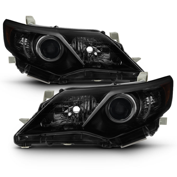 AKKON - For Black Smoke 12-14 Toyota Camry Projector Headlights Front Lamps Direct Replacement Left + Right