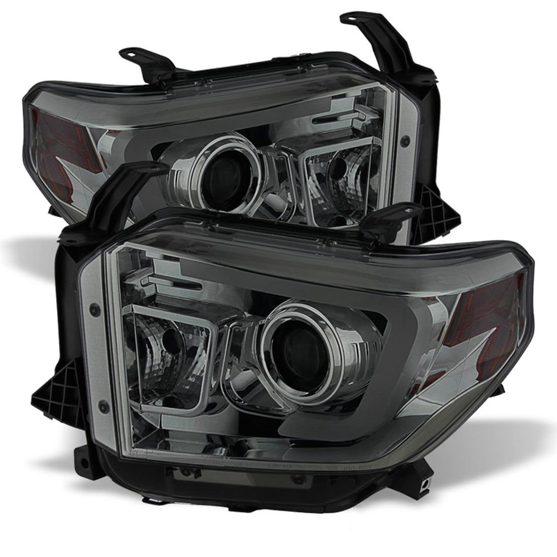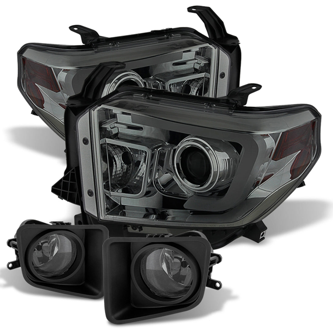 AKKON - Fits 2014-2021 Toyota Tundra LED Tube DRL Projector Headlights + Fog Lamps w/ Bulbs & Switch [Smoked Housing]