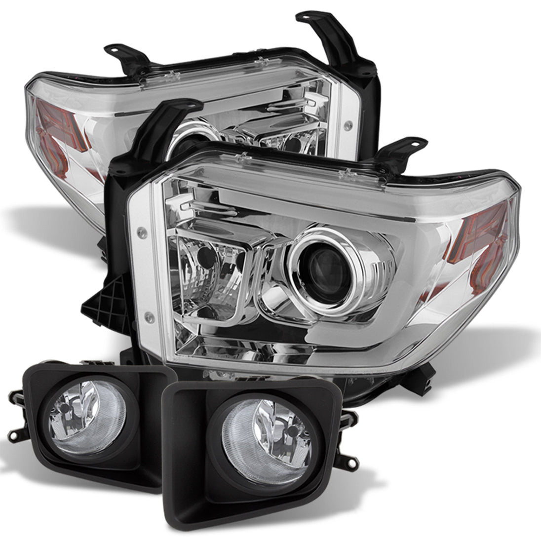 AKKON - Fits 2014-2021 Toyota Tundra LED Tube DRL Projector Headlights + Fog Lamps w/ Bulbs & Switch [Chrome Housing]