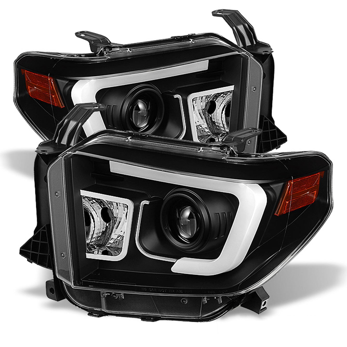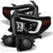 AKKON - Fits 2014-2021 Toyota Tundra Black LED Tube DRL Projector Headlights Housing + Smoked Fog Lamps w/ Bulbs & Switch