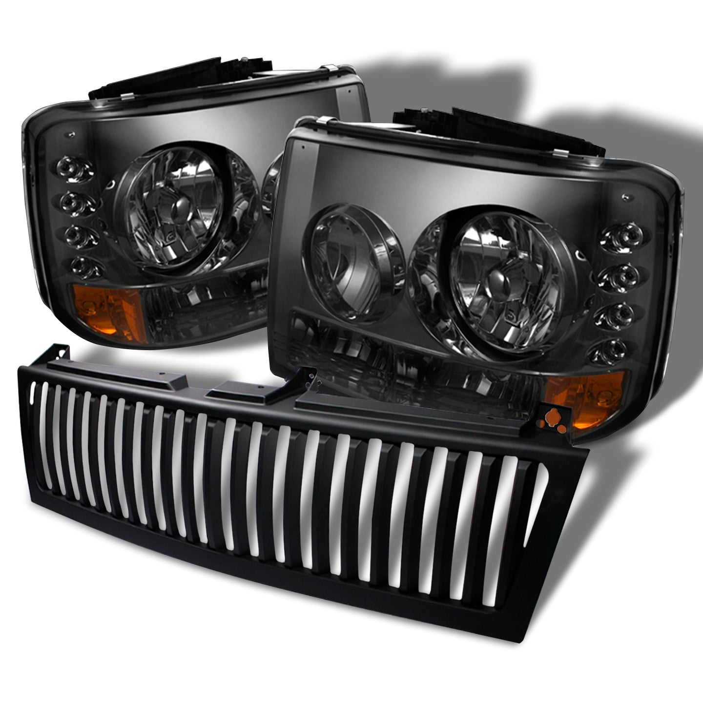 AKKON - [Headlights & Grille ]For 99-02 Silverado 00-06 Suburban Tahoe LED Smoke Housing W/Bumper Lights + Black Sport Grille