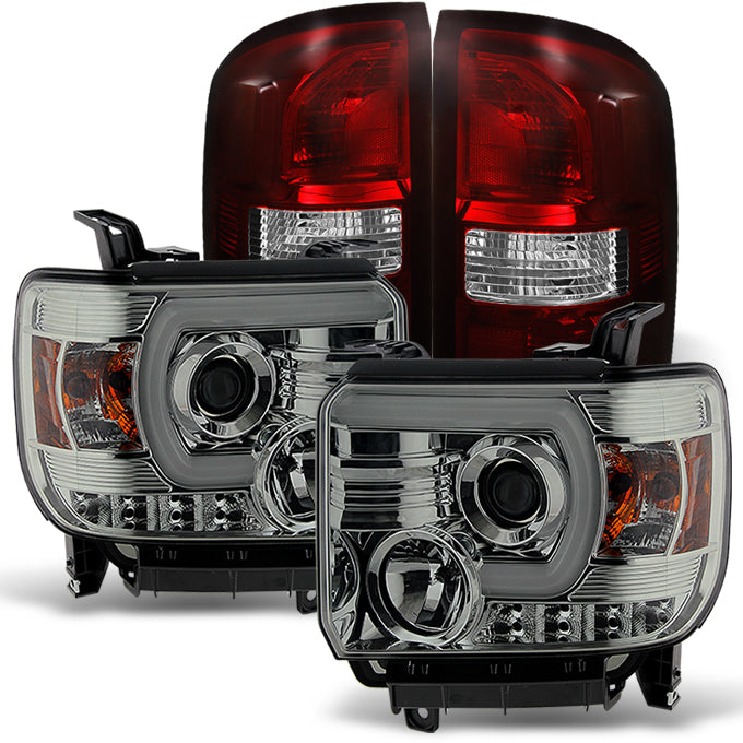 AKKON - For Smoked GMC 14-15 Sierra 1500/ 14-17 2500HD 3500HD LED Projector Tube Headlight + Dark Red Tail Light