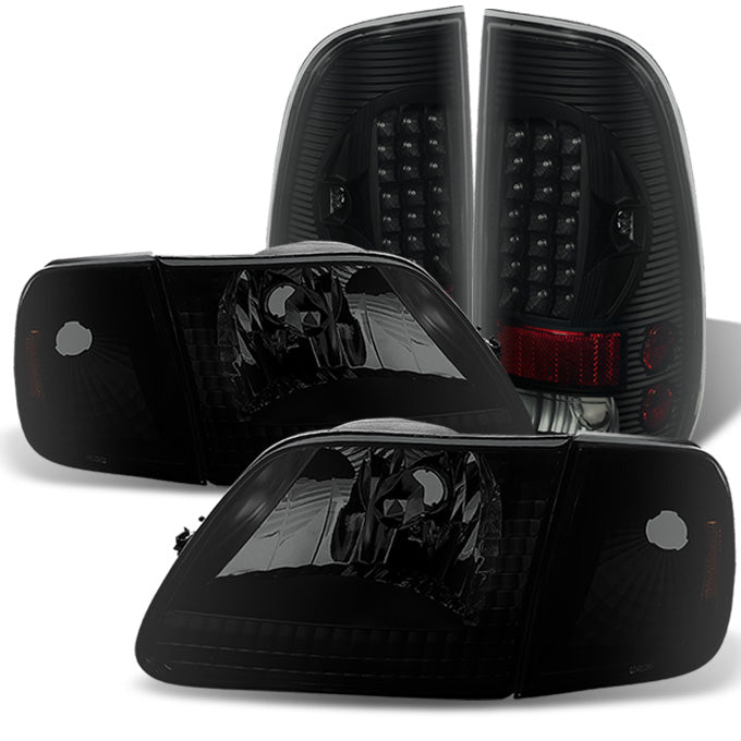AKKON - For Ford 97-03 F150 Pickup Black Smoked Headlights+ Corner Signal Light+ LED Tail Brake Lamp Replacement
