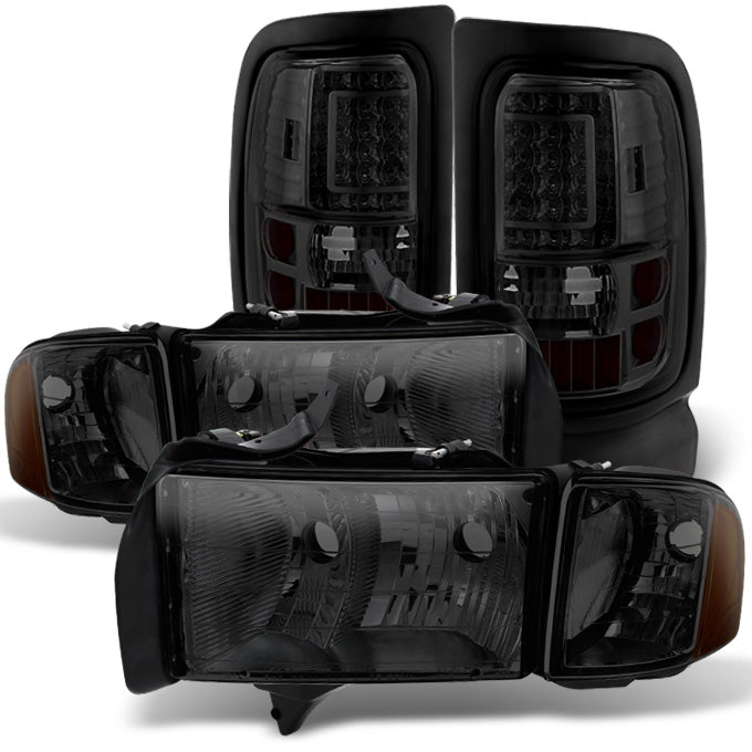 AKKON - For 99-02 Dodge Ram Sport Pickup Truck Smoked Lens Headlights W/ Corner lamp + LED Tail light Combo