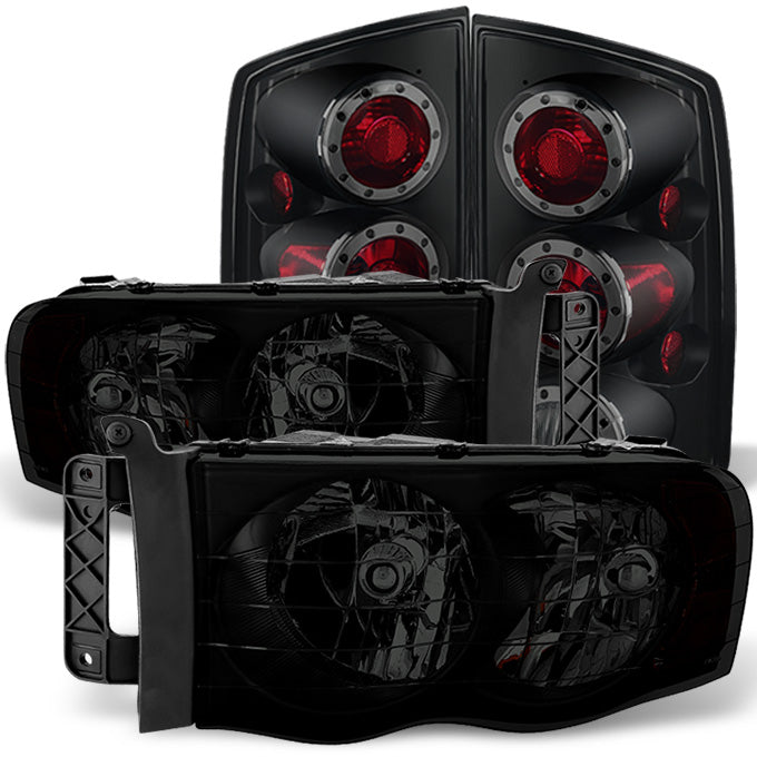 Fit 02-05 Dodge Ram 1500 03-05 2500 3500 Black Smoked Headlights+LED Tail Lights